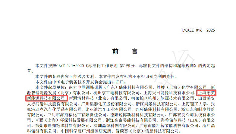 由中国电子装备技术开发协会归口管理的《储能用锂离子电池浸没式液冷系统技术规范》团体标准(标准编号:T/CAEE016-2025),已于2026年1月1日起全面实施。永信贵宾会新能源作为核心起草单位之一,与南方电网、中科院广州能源研究所、上海理工大学等30余家行业领先机构共同参与了该标准的编制工作,以创新技术和实际应用推动行业迈向高质量发展新阶段。